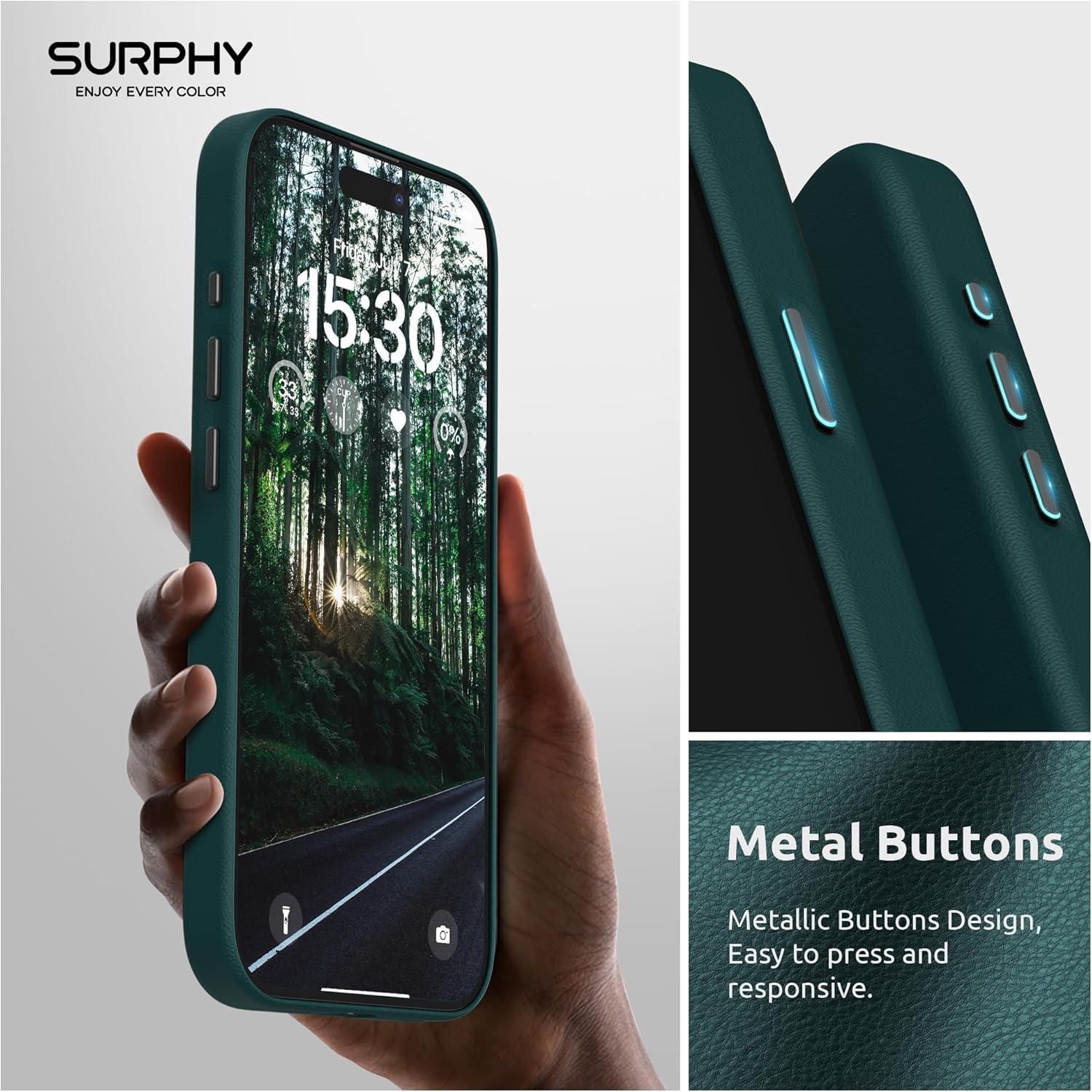 【Metallic Buttons & Soft Microfiber Lining】✅ SURPHY 15 Pro Max leather cases with metallic buttons for a luxurious style, easy to press to all buttons with responsive button cover. Soft microfiber lining, which can protect your phone from abrasion.