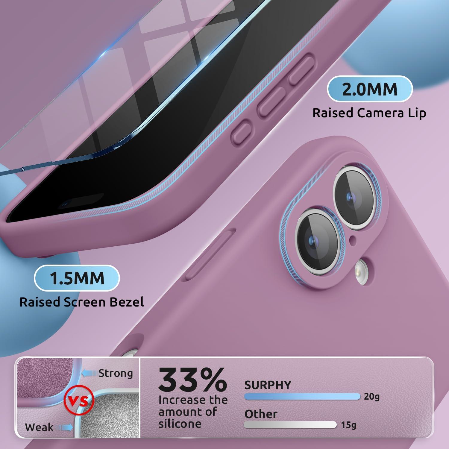 SURPHY Designed for iPhone 16 Case Compatible with MagSafe (6.1 inch 2024), with Screen Protector Liquid Silicone Phone Case (Camera Protective, Soft Microfiber Lining), Black(Lilac Purple)