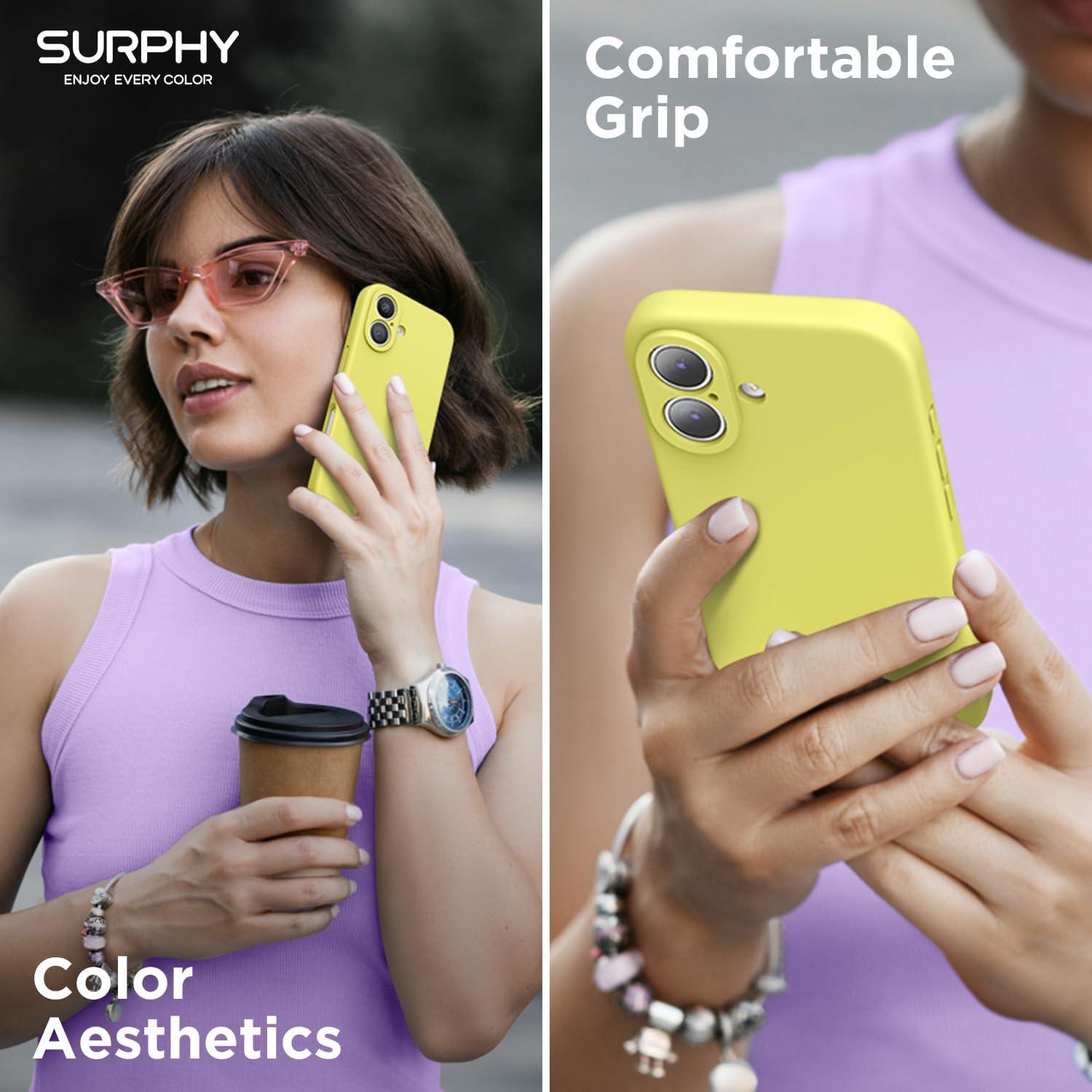 SURPHY Designed for iPhone 16 Case Compatible with MagSafe (6.1 inch 2024), with Screen Protector Liquid Silicone Phone Case (Camera Protective, Soft Microfiber Lining), Black(Yellow)