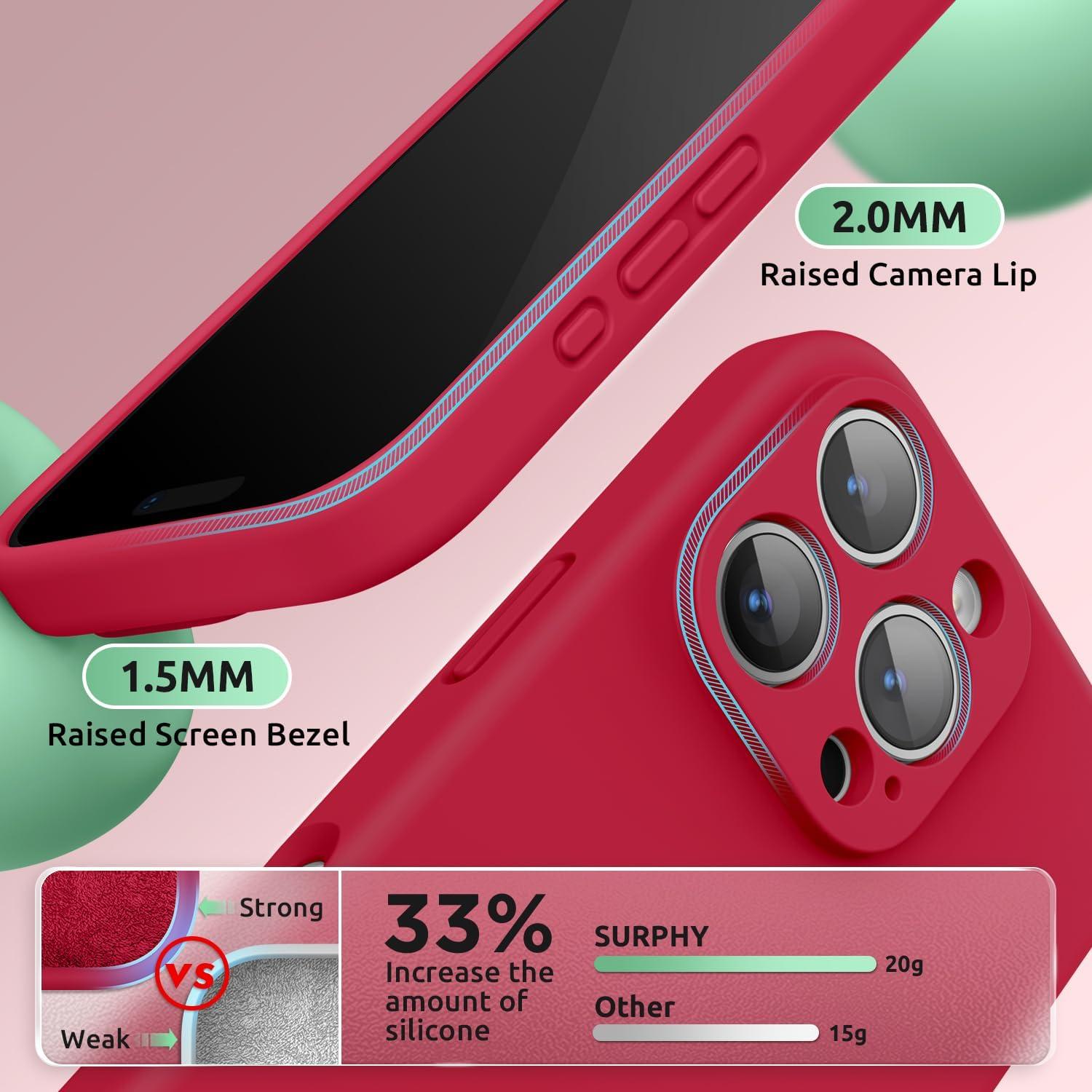 SURPHY Designed for iPhone 16 Pro Case Compatible with MagSafe (6.3 inch 2024), Liquid Silicone Phone Case (Camera Protective, Soft Microfiber Lining), Pink(Red)