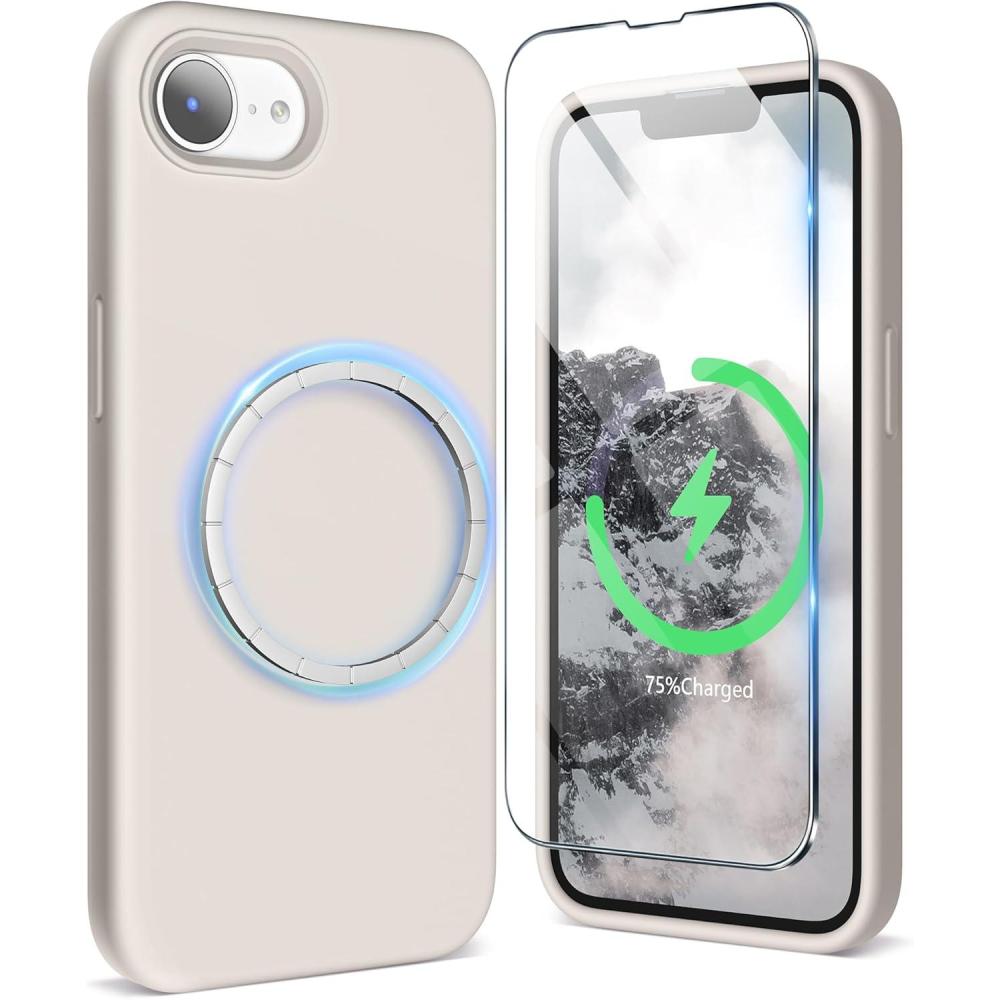 SURPHY for iPhone 16e Case Compatible with MagSafe (2025, 6.1 inch), with Screen Protector Liquid Silicone Phone Case (Cactus Green)(Stone)