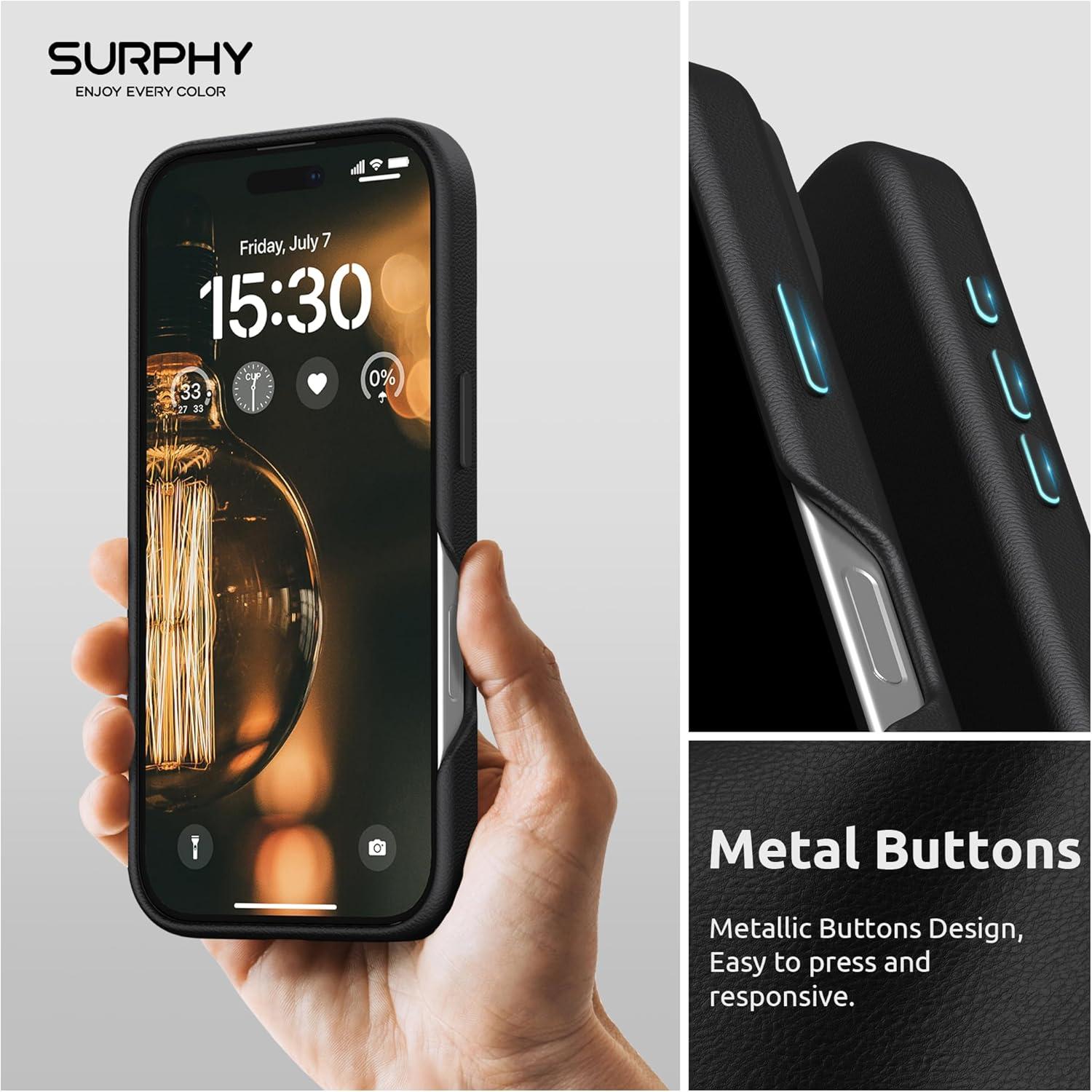 Metallic Buttons: SURPHY phone 16 Pro Max leather case with metallic buttons for a luxurious style, easy to press to all buttons with responsive button