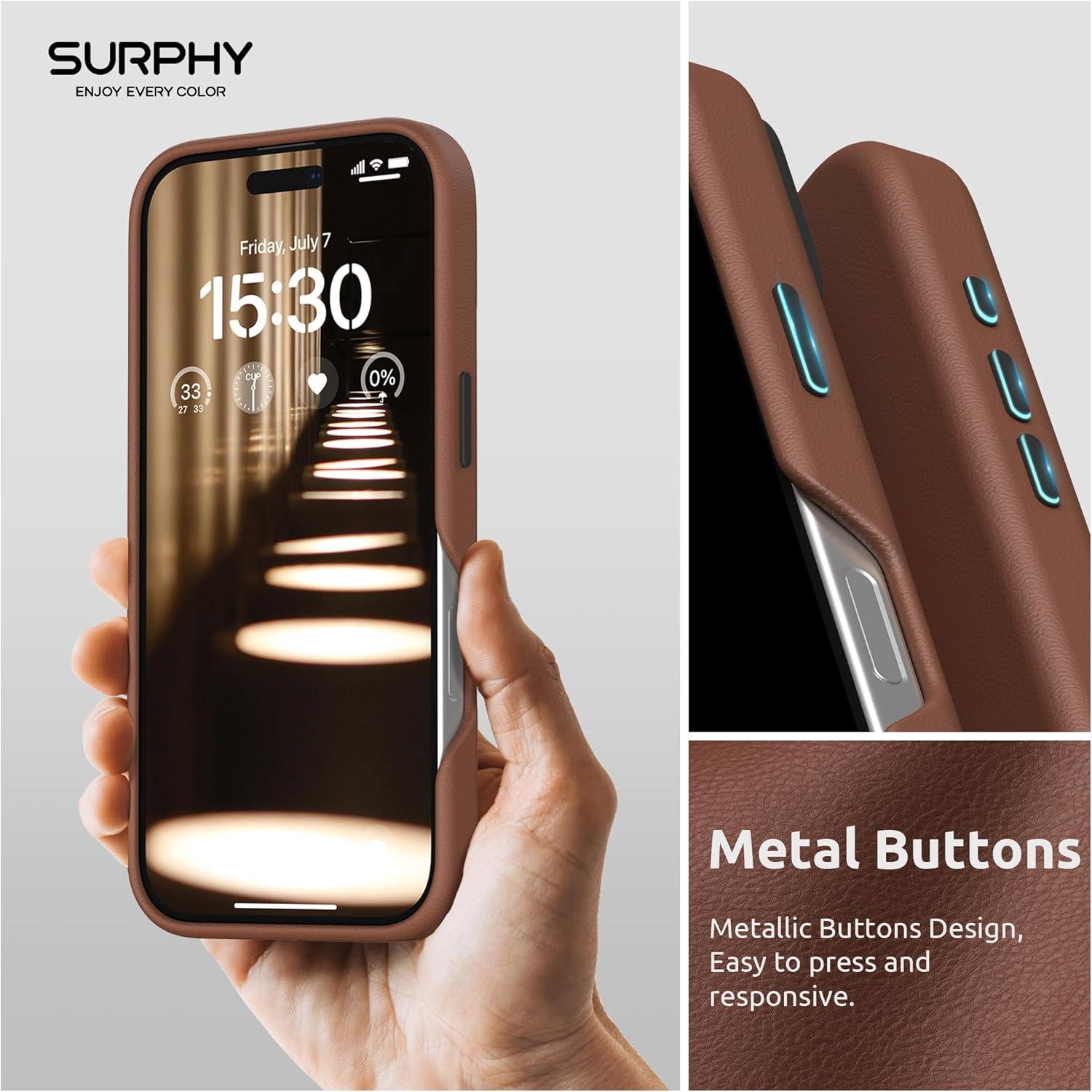 Metallic Buttons: SURPHY phone 16 Pro Max leather case with metallic buttons for a luxurious style, easy to press to all buttons with responsive button