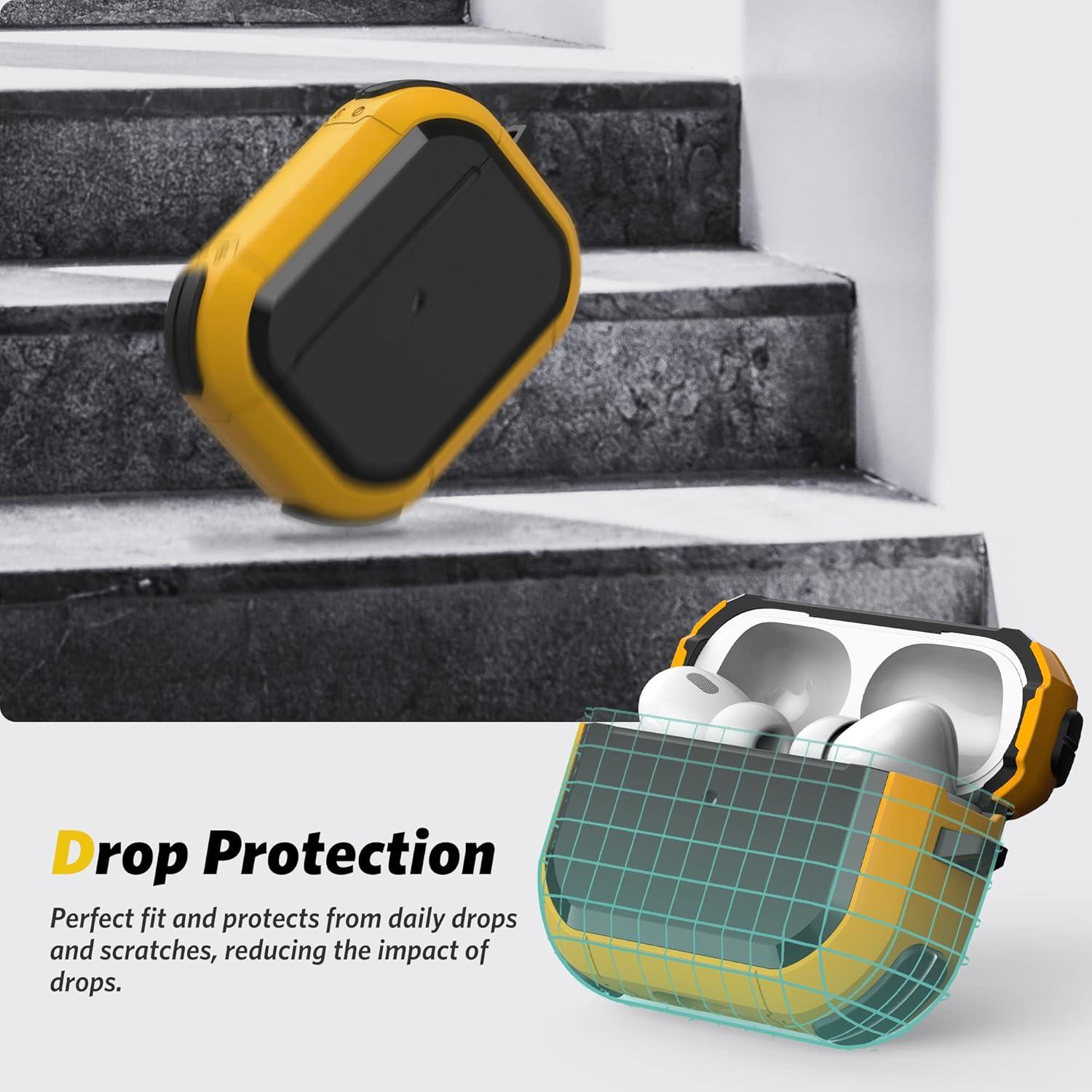 【Reverse-pole Magnet & Secure Lock Design】Reverse-pole magnet setting for easy lid opening at the touch of a button. Secure Lock Clip prevents airpods from falling out at all times. keep airpod pro cases cover always locked, the cover does not open accidentally.