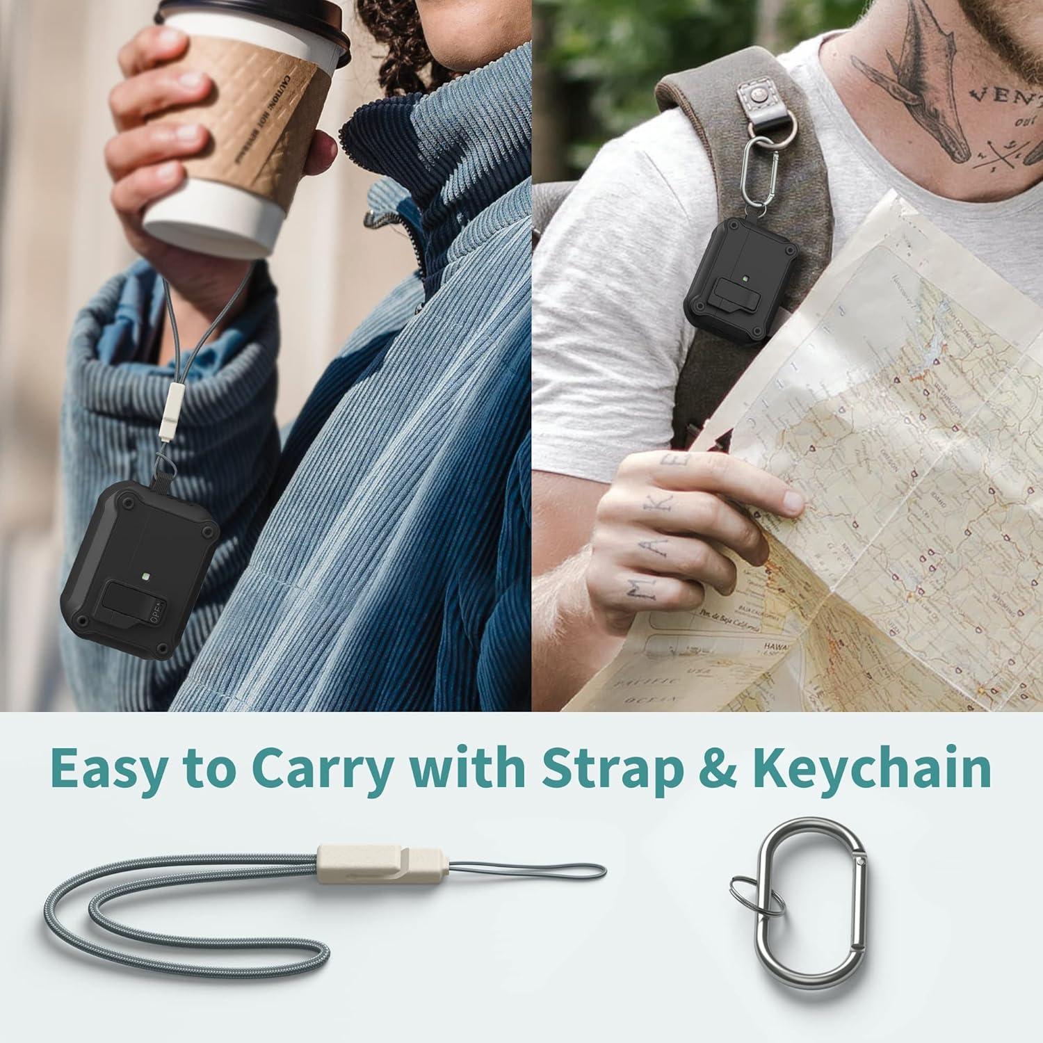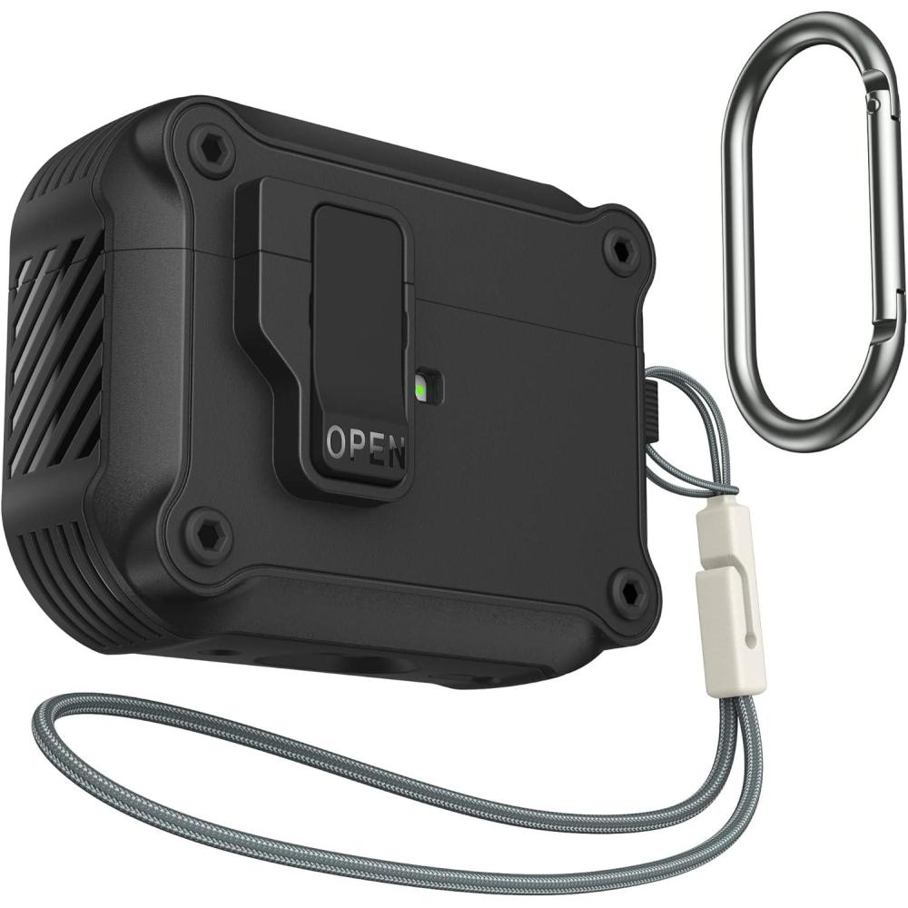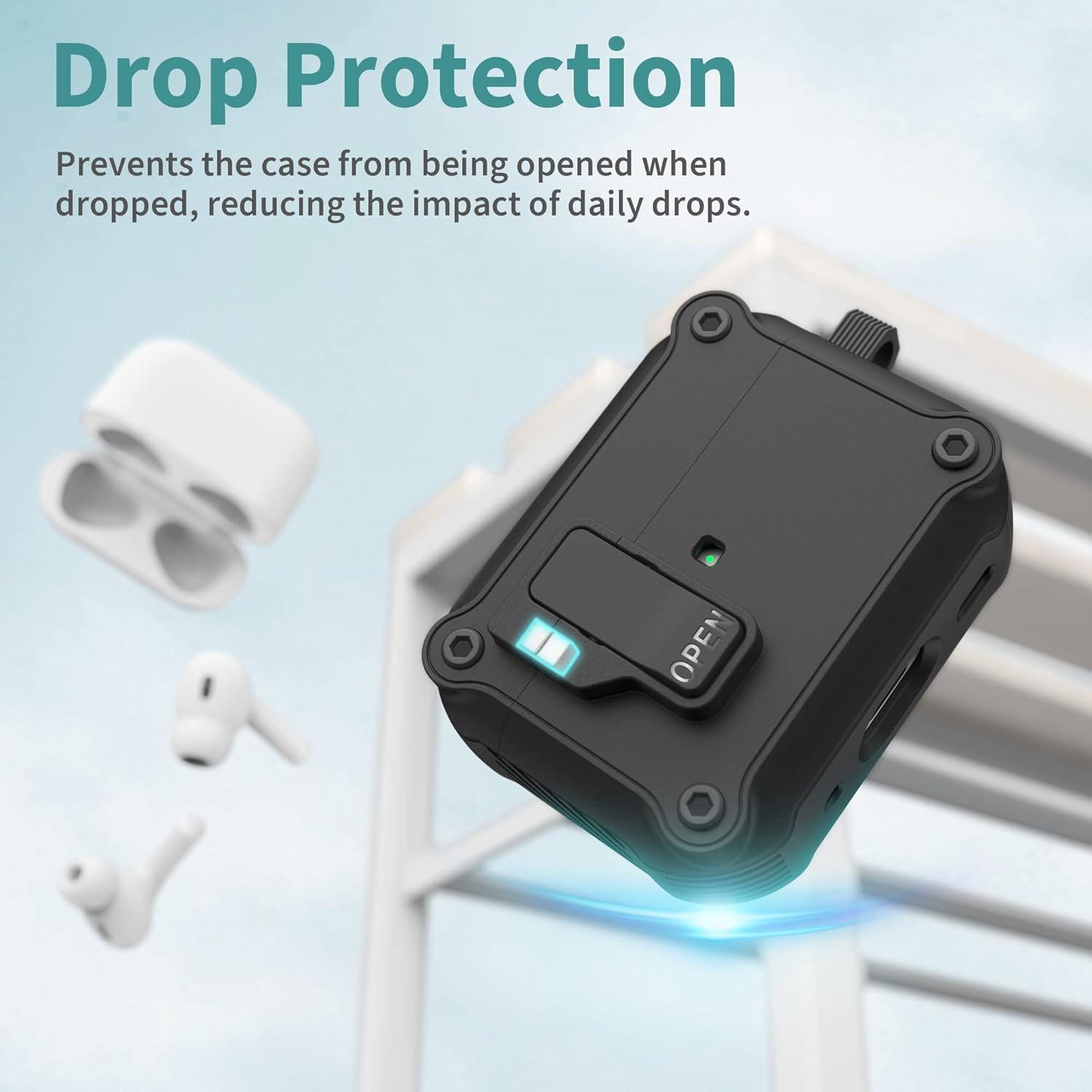 SURPHY Lock Case Designed for AirPods Pro 2 Case & AirPods Pro Case with Lock, (with Lanyard + Keychain) Secure Lock Clip case for AirPods pro 2 case Cover, Lock Black