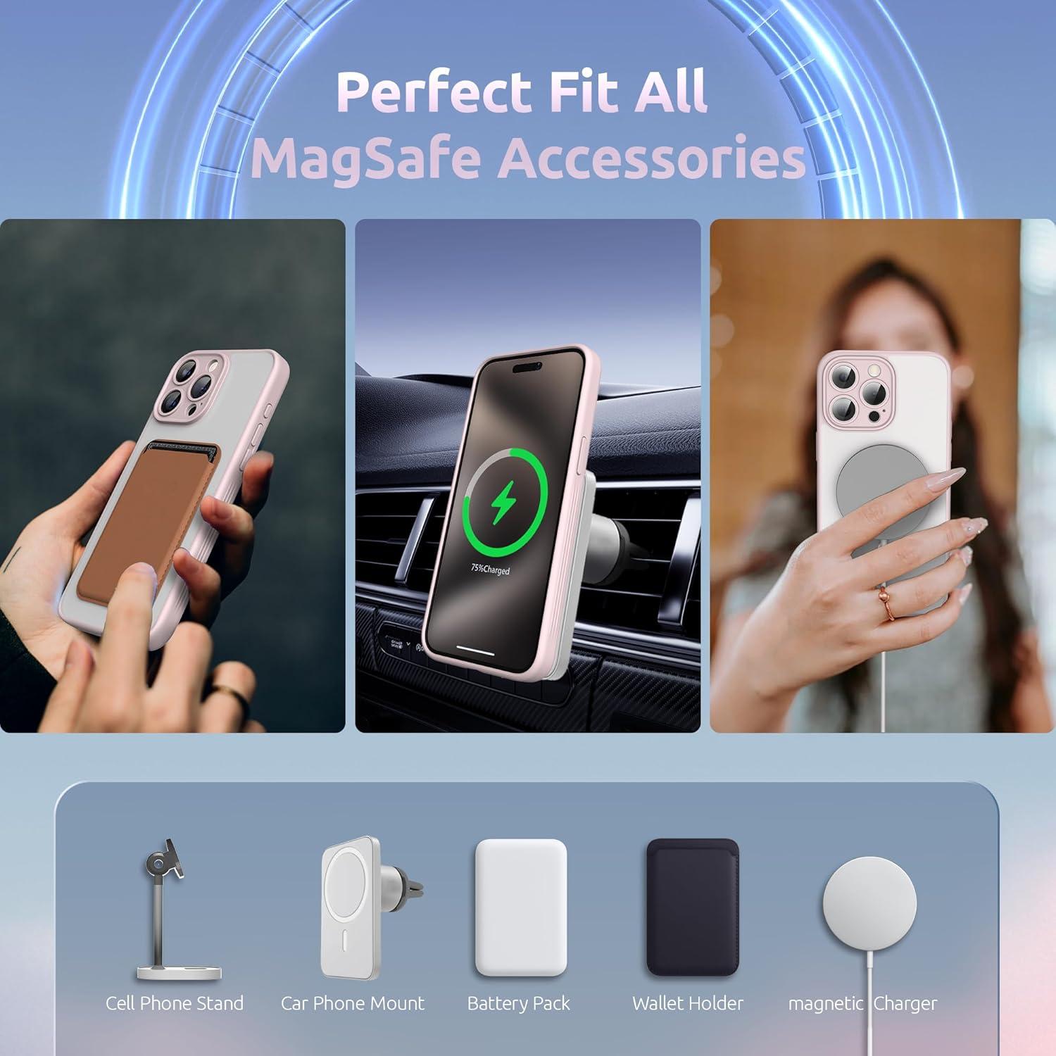 【Reinforced Magnetic】🧲 The 15 Pro Max magnetic case built-in reinforced magnet blocks to increase the range of magnetic force and magnetic suction effect. Firmly adsorbs the magsafe charger and accessories does not fall off easily, allowing you can have faster wireless charging.