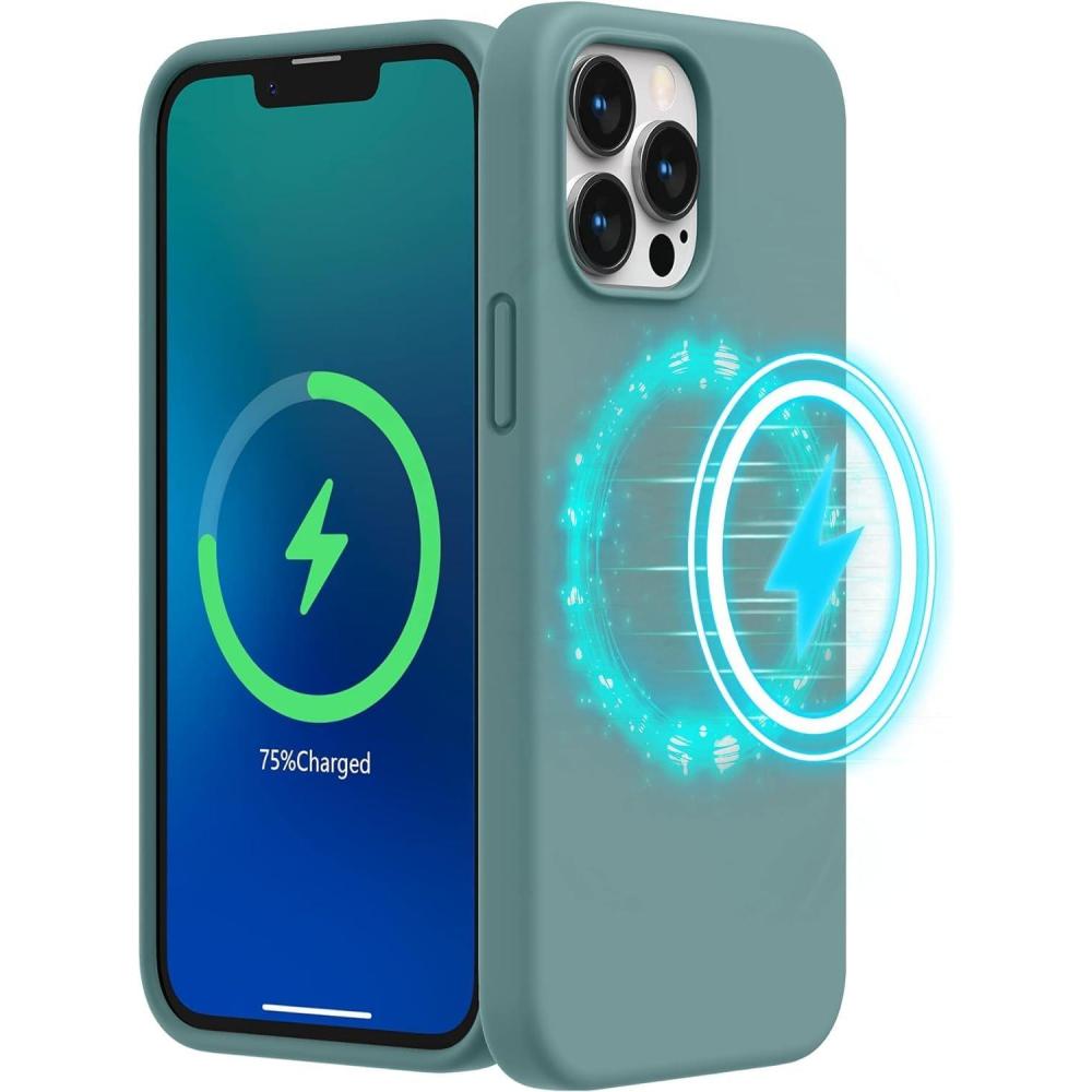 SURPHY Magnetic Case Designed for iPhone 13 Pro Max Case Compatible with MagSafe (6.7 inch 2021 Release), Liquid Silicone Phone Case with Microfiber Lining (Cactus Green)(Cactus Green)