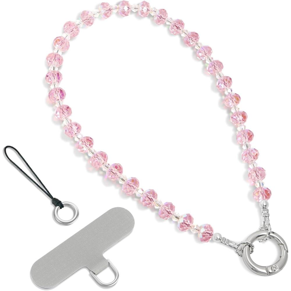 SURPHY Phone Charm, Phone Charms Strap with Tether Tab & Premium Metal Buckle, Cellphone Wrist Strap Chain(C- Crystals Pink)
