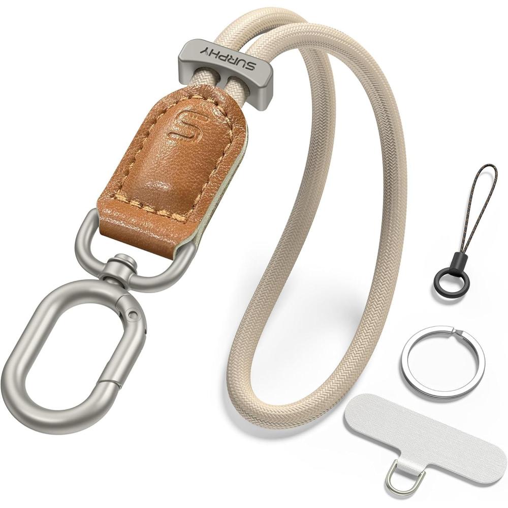 SURPHY Phone Wrist Strap, Keychain Wristlet, Anti Theft Wrist Lanyard with Phone Tether Tab, Premium Metal Key Chain with Leather, Keychains for Women and Men, Phone Strap, Phone Charm