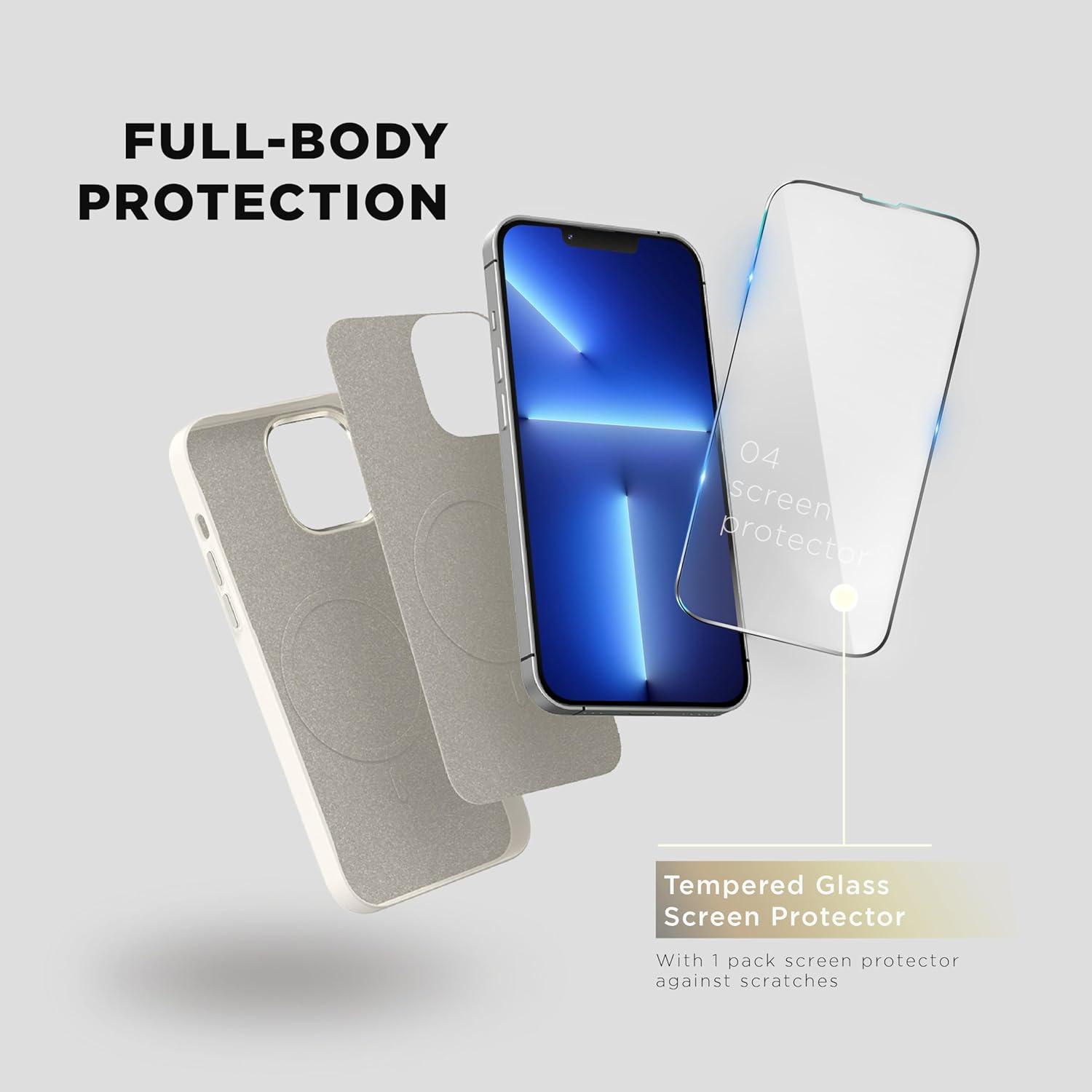 SURPHY Slim Case Compatible with iPhone 13 Case with Screen Protector, Compatible with MagSafe, Ultra Thin Lightweight Hard PC Phone Case (6.1 inch 2021) (Ivory White)(Ivory White)